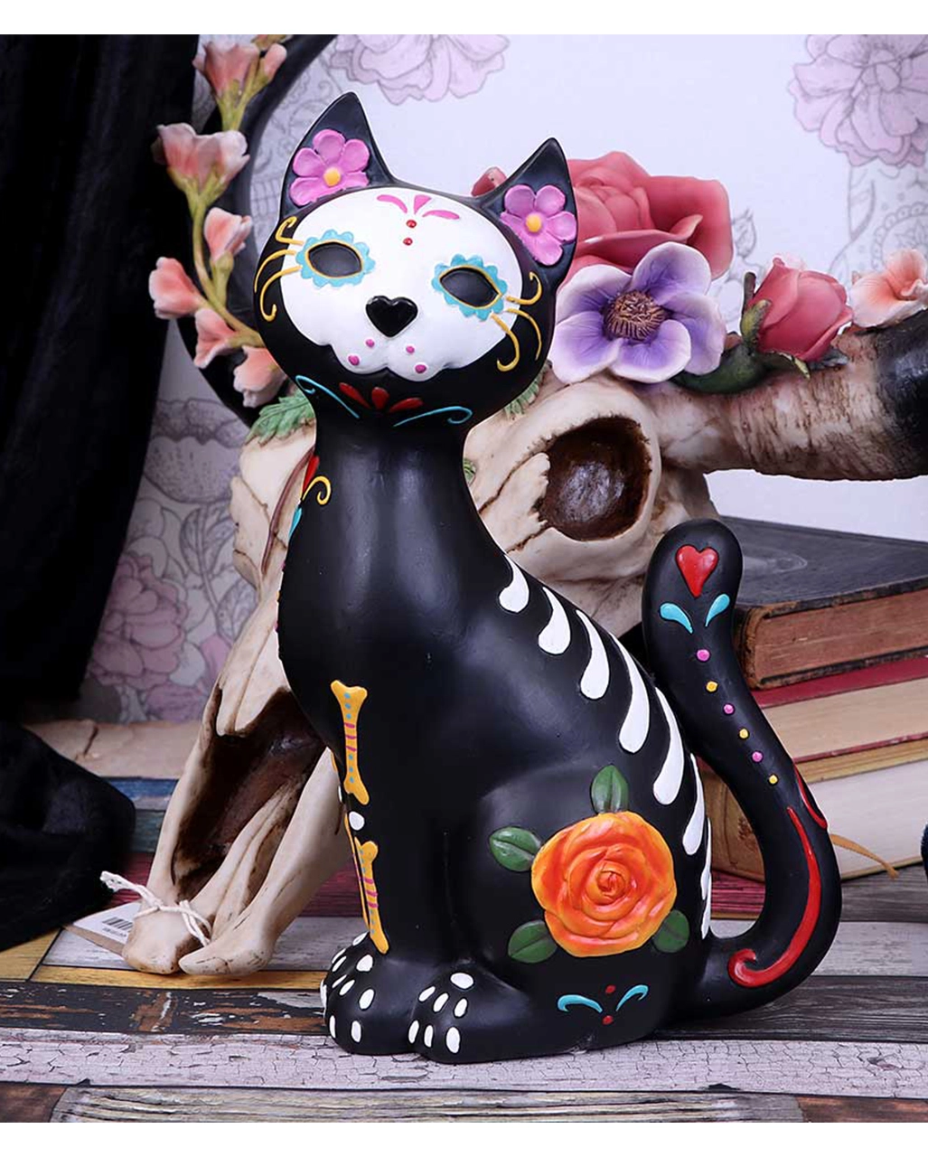 Aufrecht Sitzende Sugar Skull Katze Deko