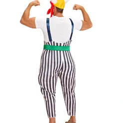 Das Dicker Gallier Kostüm besteht aus der typischen blau/weiß gestreiften Hose, einem grünen Gürtel, einem Gallierhelm aus Stoff, der mit Hörnern und langen roten Zöpfen versehen ist, sowie einem buschigen roten Schnauzbart. Für die Kleinen empfehlen wir das Gallischer Krieger Kinderkostüm L und als passendes Schmuckstück unser Keltischer Armreif silber.