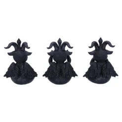 Unsere 3 Baphomet Figuren bestehen aus hochwertigem Kunststein und sind liebevoll von Hand bemalt. Die Gothic Deko ist ideal, um deinen Altar zu dekorieren oder auf dem Schreibtisch für einen Eyecatcher zu sorgen. Als Geschenkidee für Gothics, Esoteriker und Okkultisten kommen unsere niedlichen Baphoboos super an! Bestelle auch unsere außergewöhnliche Baphomet Antik Figur mit Ornamente.