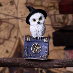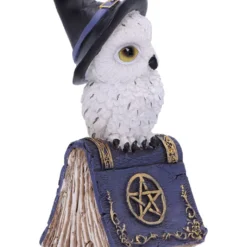 Unsere süße Eule weiß um die Mysterien des magischen Buches. In dieser Darstellung hockt die Schneeeule auf dem blauen Hexenbuch, um dir alle Geheimnisse zu offenbaren. Sichere dir die Eule mit Pentagramm Zauberbuch als eindrucksvolle Tischdeko für Halloween oder als Sammlerstück für Hexen Fans. Unsere Eule auf Buch ist ein echter Eyecatcher und kommt in jedem Regal perfekt zur Geltung.