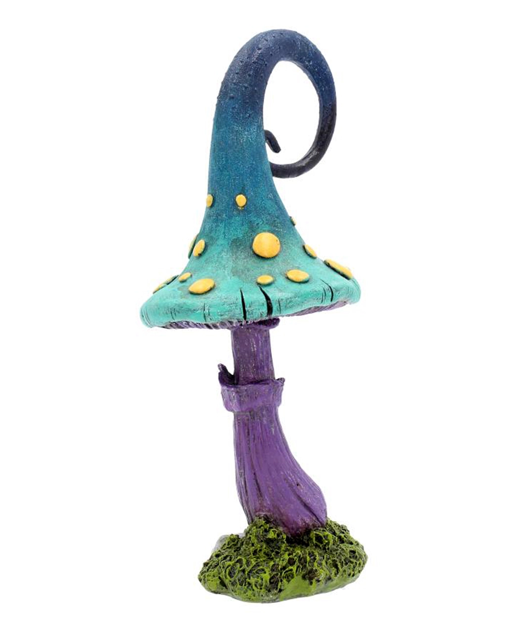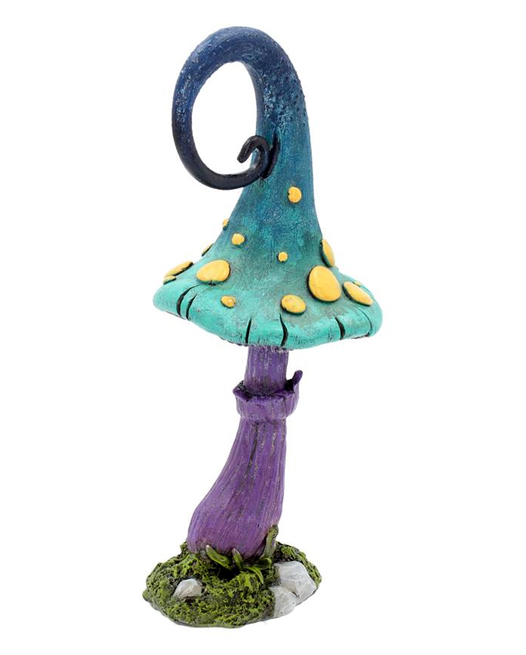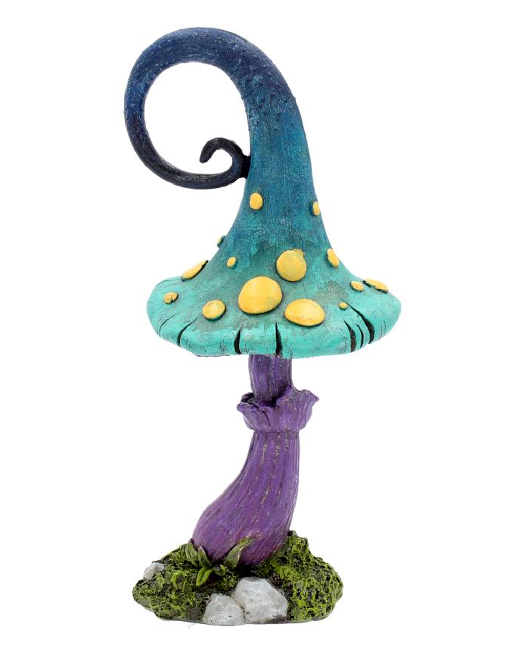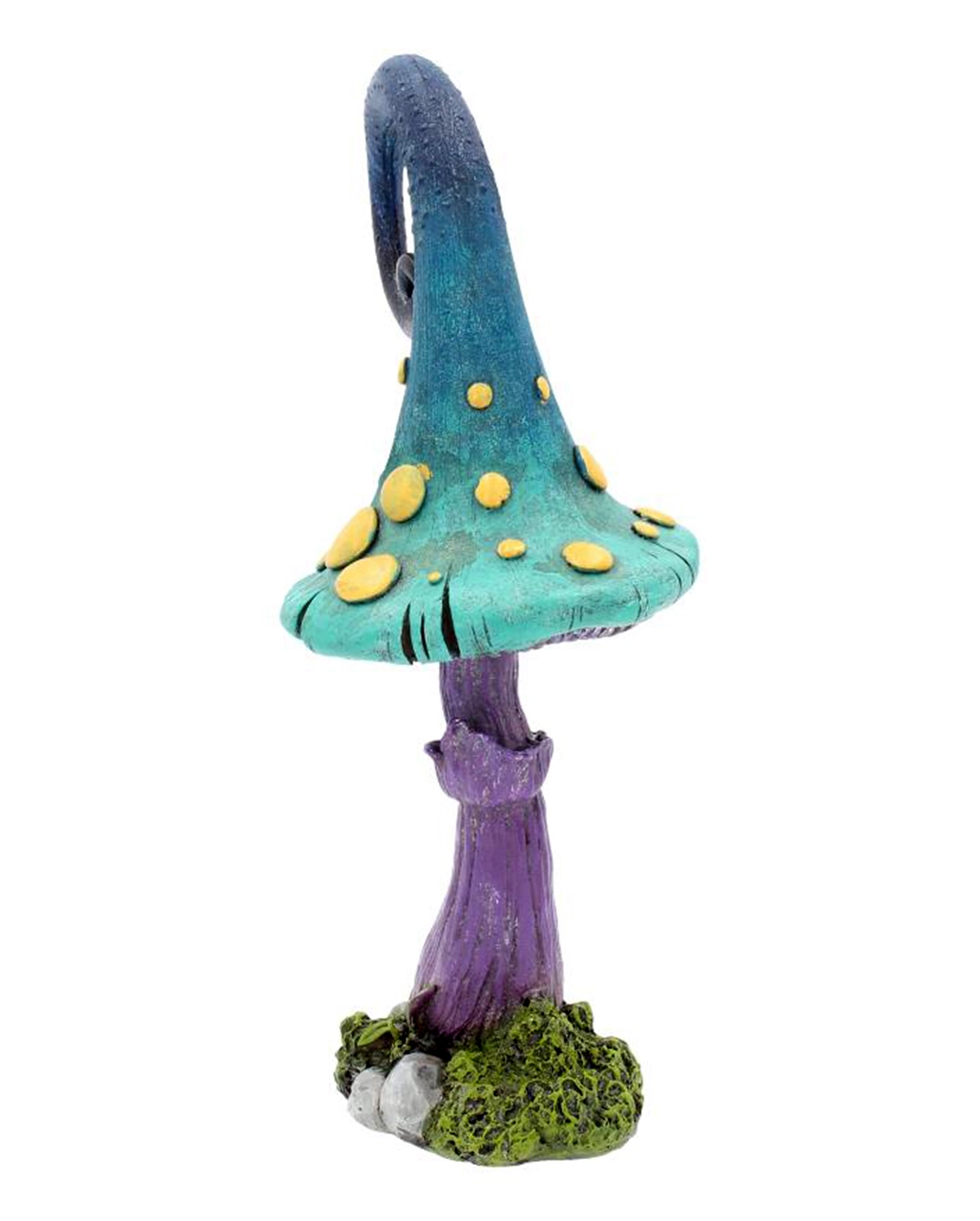 Unser bunter Märchenpilz ist 24 cm groß und besticht mit einem schillernden Hut in Türkis-Blau. Gelbe Punkte bilden hierzu einen tollen Kontrast, der dich staunen lässt. Der Steinguss Märchenpilz steht auf einem lila Stiel. Diese schöne Fantasy Deko wurde aus Kunststein gegossen und sorgfältig von Hand bemalt. Entdecke auch die Dark Mercy Elfe in unserem Onlineshop.