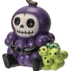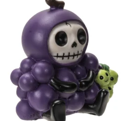 Die Furrybones Figur – Budo ist eine kleine niedliche Gothic Sammlerfigur, die sich als Weintraube verkleidet hat und so hofft im Obstkorb nicht weiter aufzufallen. Das Furrybones Monster sieht in seinem violetten Weintraube-Kostüm, gepaart mit ein paar grünen Trauben, knackig lecker aus. Hoffentlich wird das der kleinen Furrybones Figur nicht zum Verhängnis? Sich zu kostümieren ist das liebste Hobby, der verrückten Furrybones Skelett-Figuren. Damit haben die kleinen Kerlchen längst Kultstatus bei Gothic und Halloween Fans erreicht. Wenn du die Furrybones genauso liebst wie wir, dann ergänze deine Furrybones Sammlung mit Budo dem niedlichen Weintrauben Furrybones Monster. Unsere kleine süße Skelett-Figur wird deine vegetarische Gothic-Tischdeko im schaurig-süßen Style.