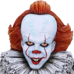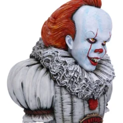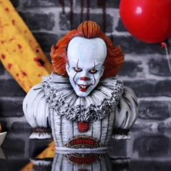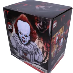 Unsere IT Pennywise Statue ist ca. 30 cm groß und aus hochwertigem Kunststein gefertigt. Die von Hand bemalte ES Büste besticht mit einer unglaublich realistischen Ausarbeitung. Man könnte glatt meinen, Pennywise würde direkt vor einem stehen und mit seinem Blick durchbohre. Neben dieser eindrucksvollen IT Pennywise Statue findest du auch unseren dekorativen Pennywise IT – Time to Float Krug 15,5cm im Onlineshop.