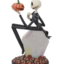 Verschenke die Jack Skellington auf Grabstein Sammelfigur oder kröne deine eigene Fanartikel Sammlung mit diesem Highlight hochwertiger Deko Kunst. Der Jack Skellington, der Chef von Halloweentown hockt auf einem Grabstein und scheint im Gespräch mit einem Kürbiskopf. Diese charmante Nighmare Before Christmas Skulptur ist handbemalt und handgefertigt aus hochwertigem Polyresin (Kunststein).