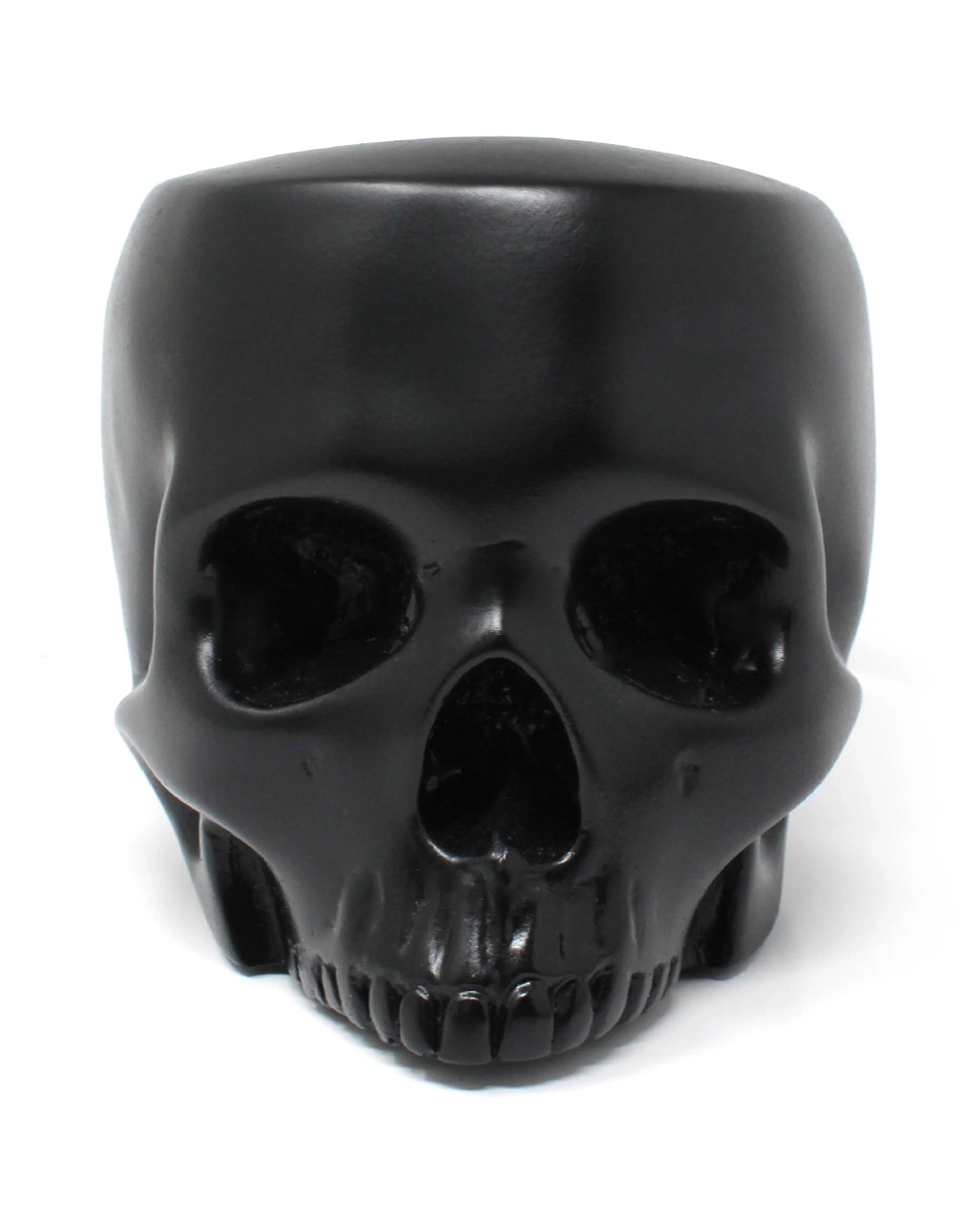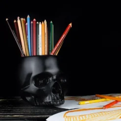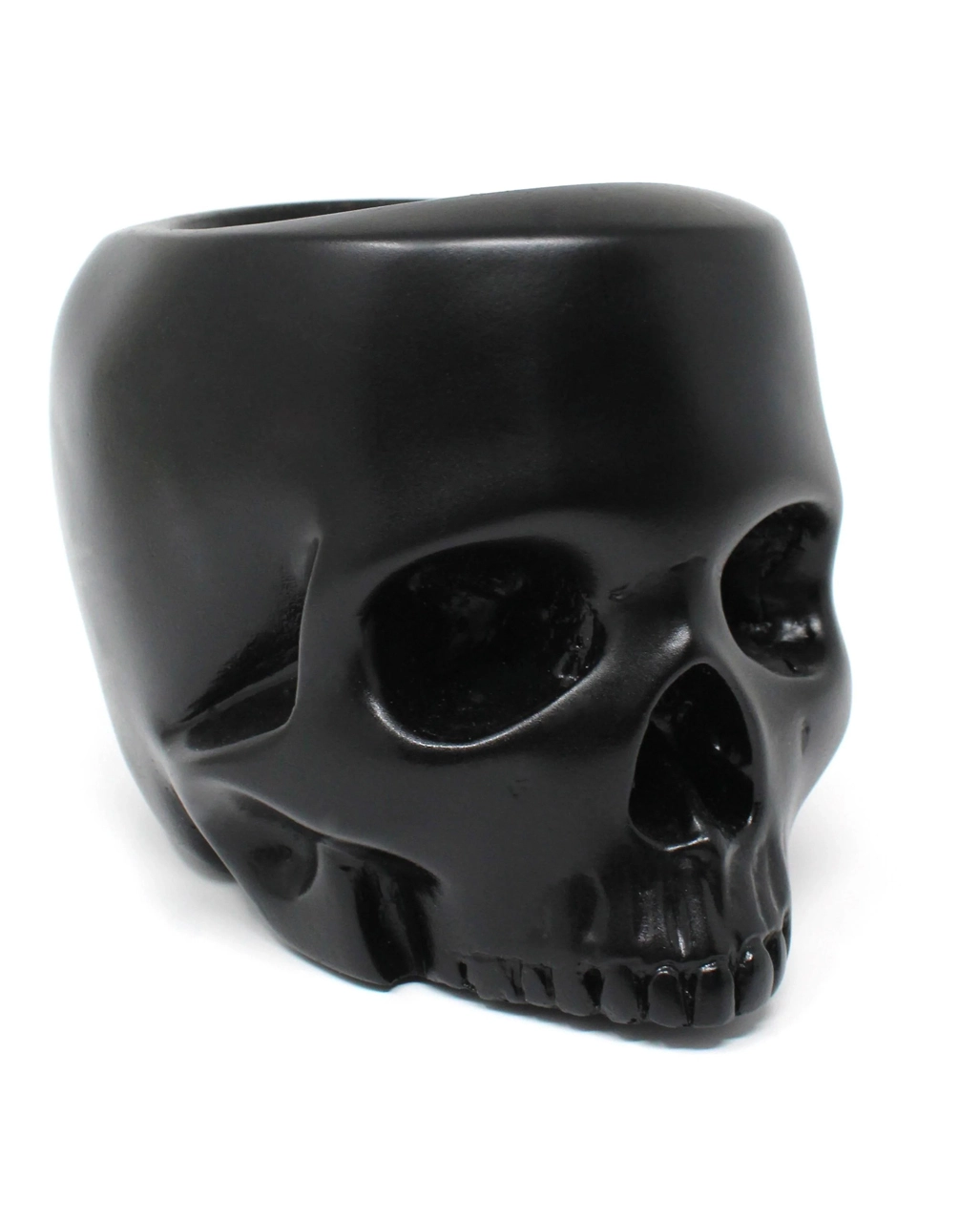 Unser kieferloser Totenkopf Behälter eignet sich zur Aufbewahrung für Büroartikel, Deko-Blumen und ähnlichem. Der schwarze Deko-Schädel besteht aus Gips und ist robust verarbeitet. Die Öffnung am Totenkopf eignet sich für zahlreiche Utensilien, die du stilvoll in Szene setzen willst. Unsere Totenkopf Aufbewahrung ist von The Blackened Teeth Uk gefertigt – deiner Marke für Gothic Wohndeko. Entdecke auch den R.I.P. Pflanzenschale 14cm