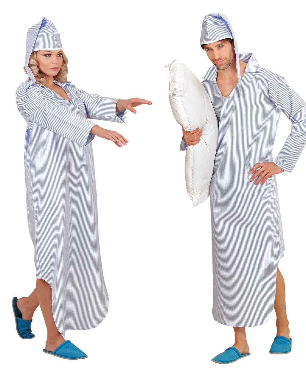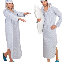 Wer noch nach lustigen Verkleidungen für die närrische Zeit sucht, wird bei unserem Kostüm Nachthemd mit Streifen fündig! Auf Faschings Feiern und Mottopartys wirst du mit Sicherheit für Lacher sorgen und wenn du wieder zuhause bist, kannst du direkt ins Bett fallen!