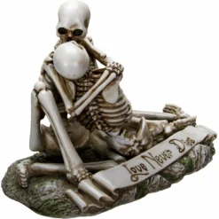 Unser Love Never Dies Skelett Paar ist eine Skulptur mit einer wunderbaren Bedeutung. Vor allem Gothic Fans werden diesen düster-romantischen Anblick lieben. Die beiden Knochengerippe waren zu Lebzeiten so verliebt, dass ihre Liebe einfach unvergänglich ist. Das Fleisch ist längst verwest, aber die innige Liebe hat immer noch bestand. „Love nerve dies“ steht zur Untermalung unter dem Paar. Damit ist diese liebevoll Skelett Deko Figur ein tolles Hochzeitsgeschenk.