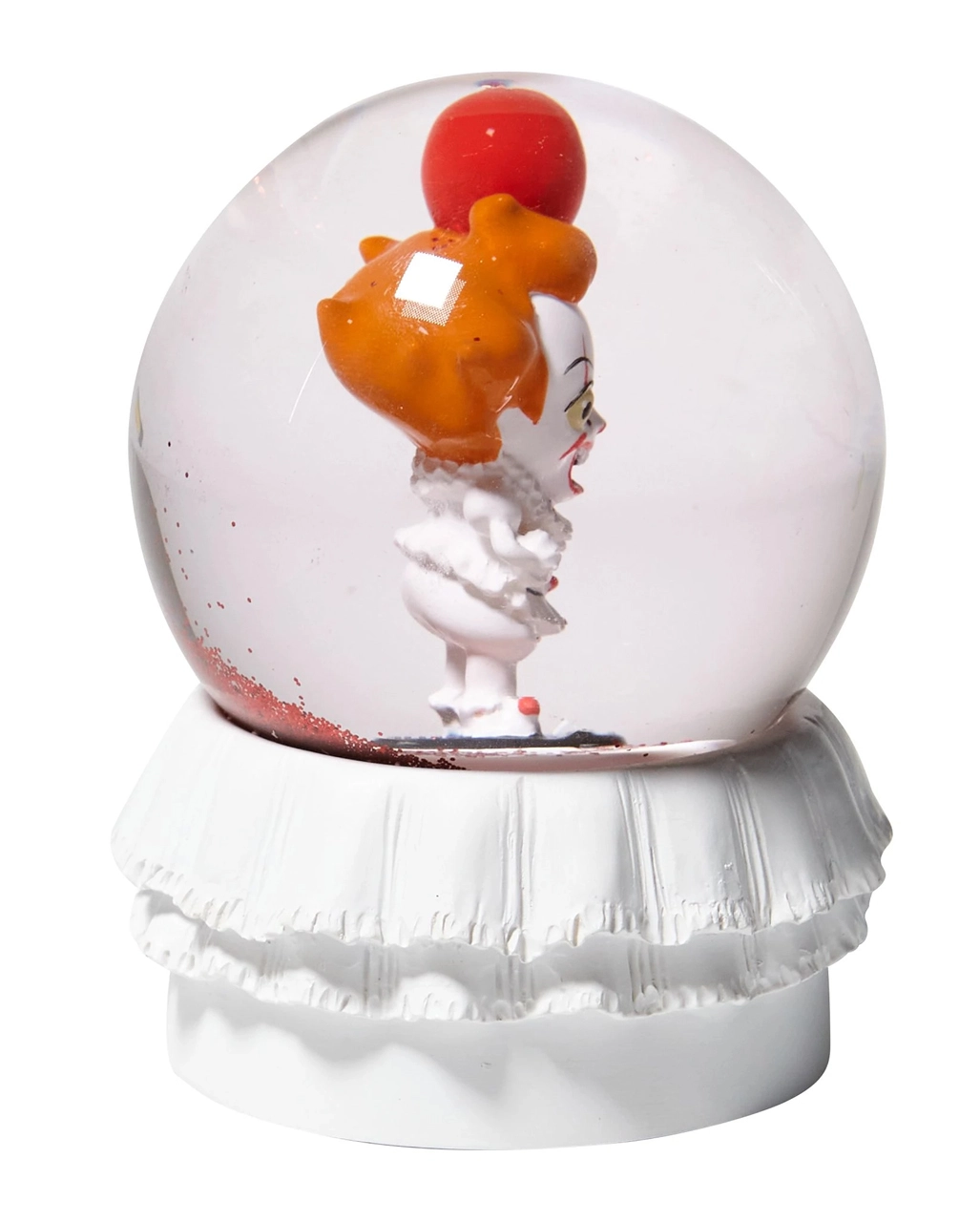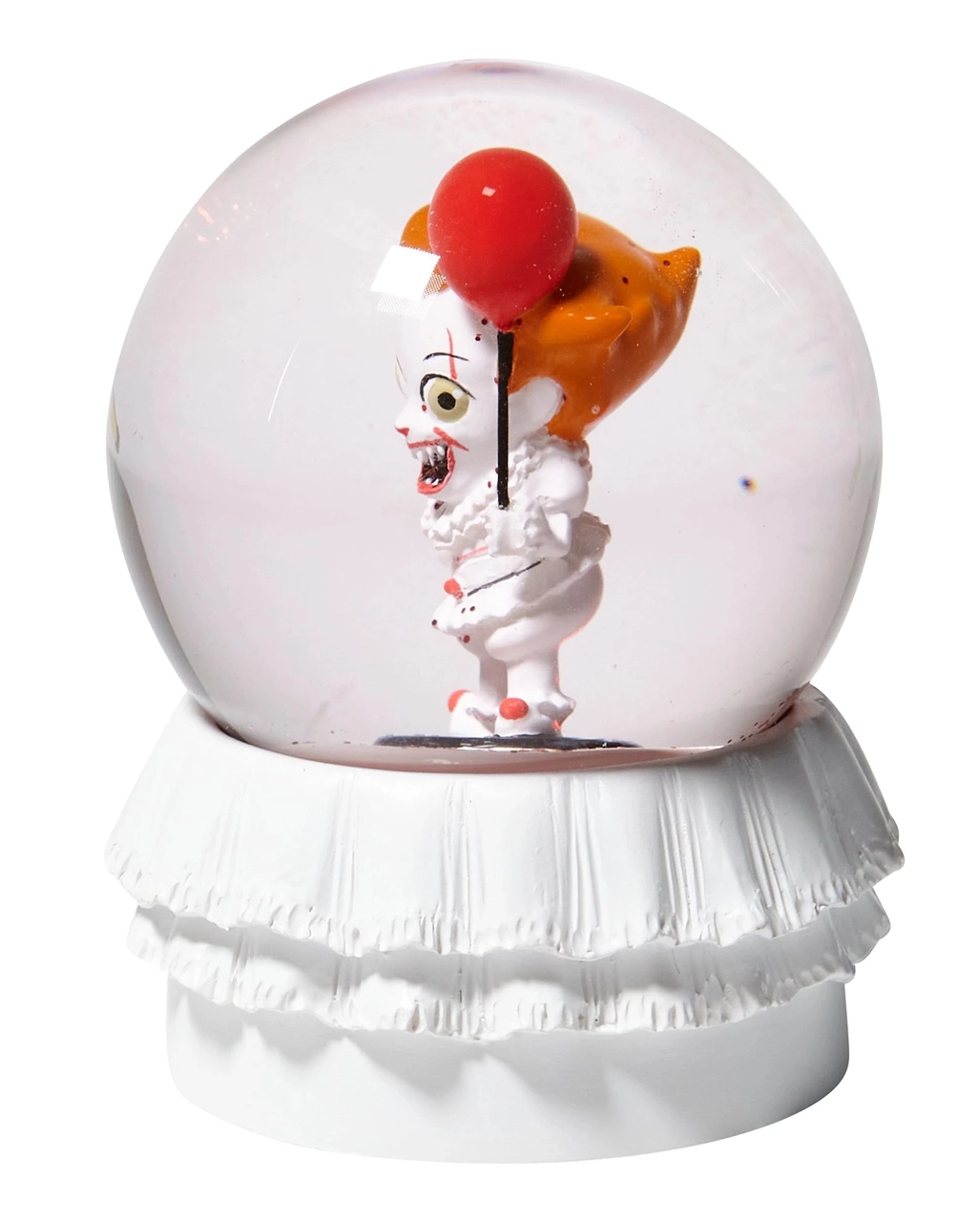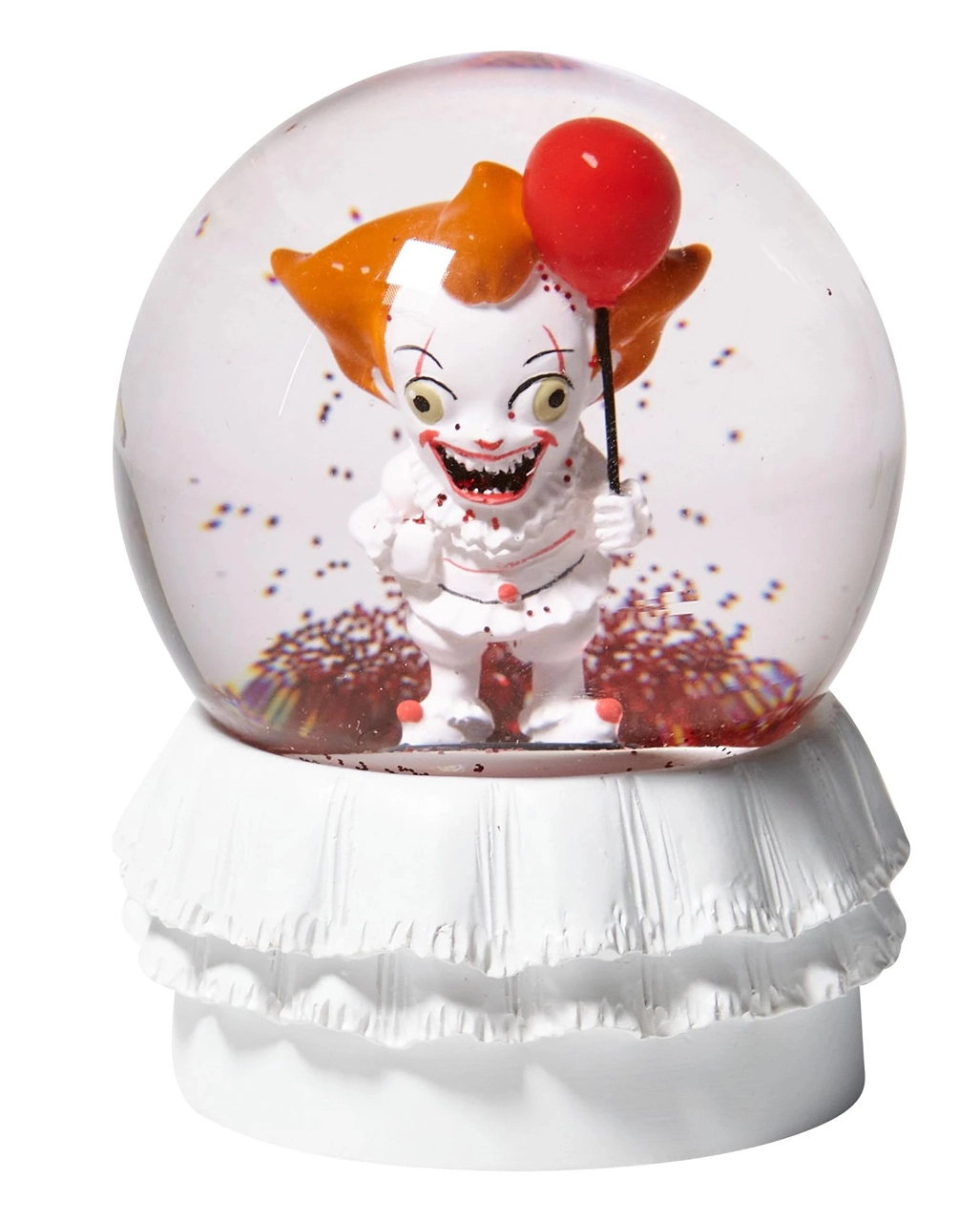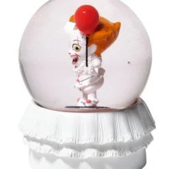 Spätestens seit Andy Muschiettis Neuauflage des weltberühmten Horrorklassiker „IT“ erfreut sich der kinderfressende Clown Pennywise großer Beliebtheit. Mit unserer Pennywise IT Schneekugel erhältst du den mordenden Zirkusclown als Horror Deko für dein Figurenregal. Pennywise hält einen blutroten Luftballon in Händen und grinst dich besessen an. Wenn du die Schneekugel schüttelst, wirbeln eindrucksvolle Glitterpartikel umher – ein geniales Geschenk für Pennywise Fans!