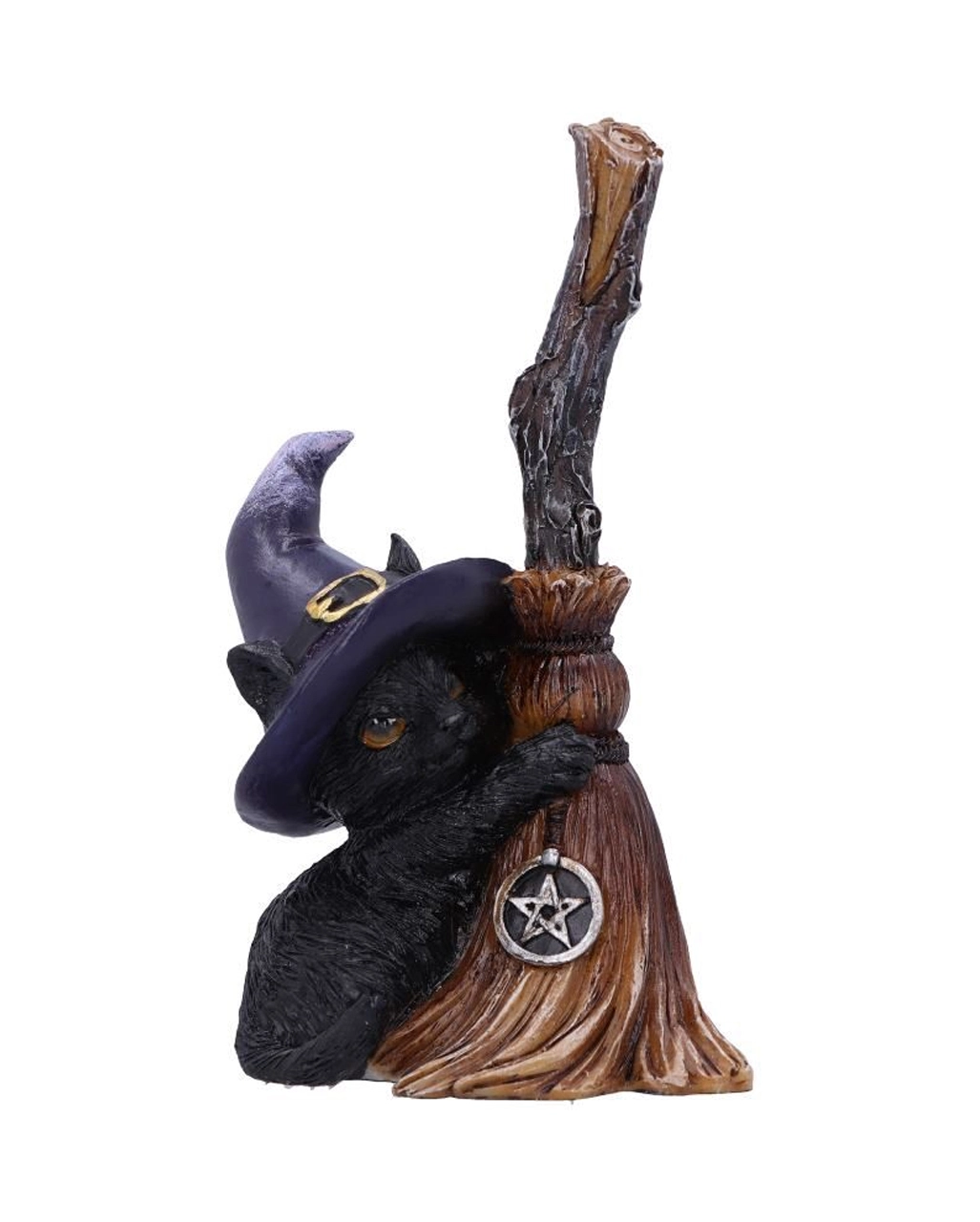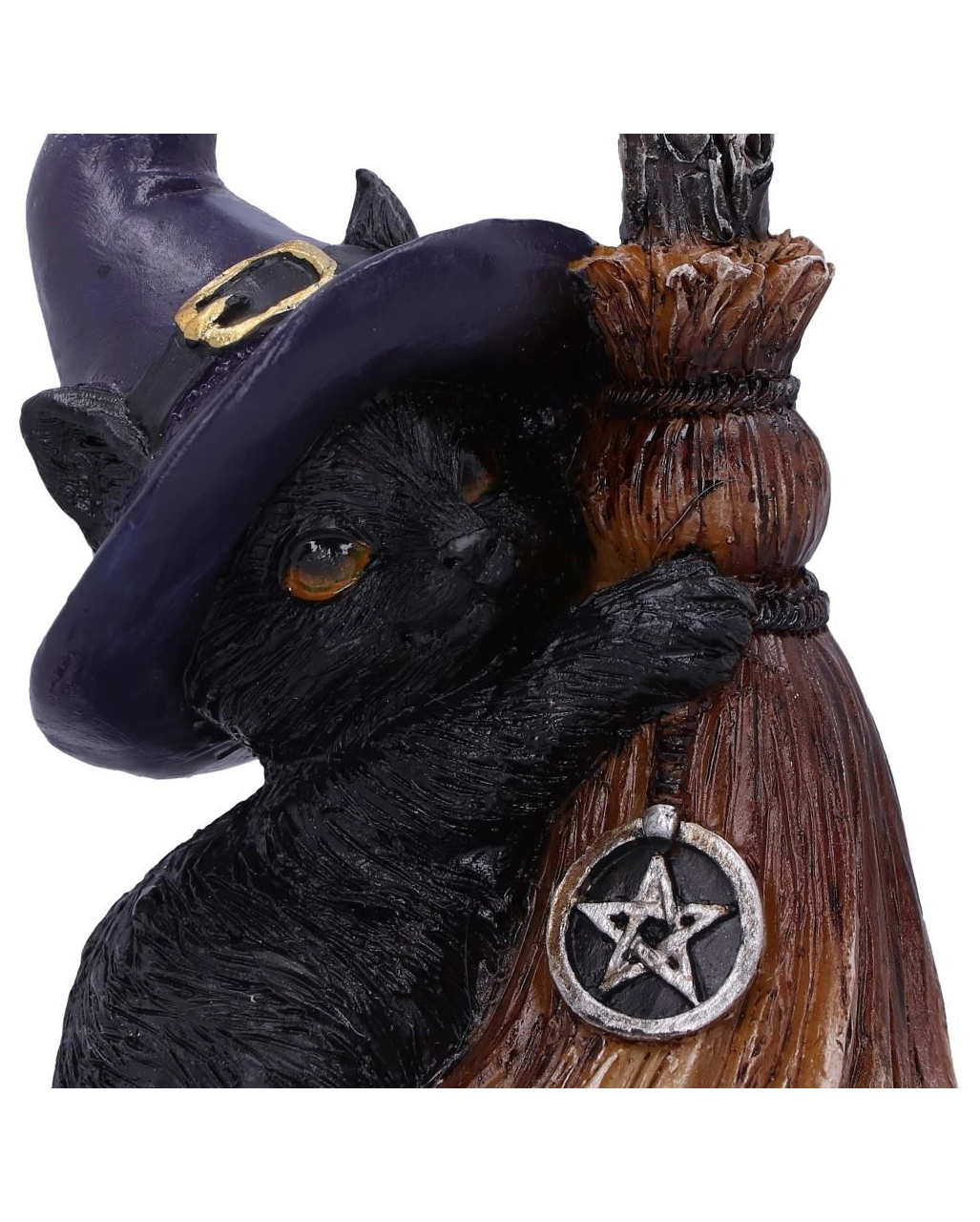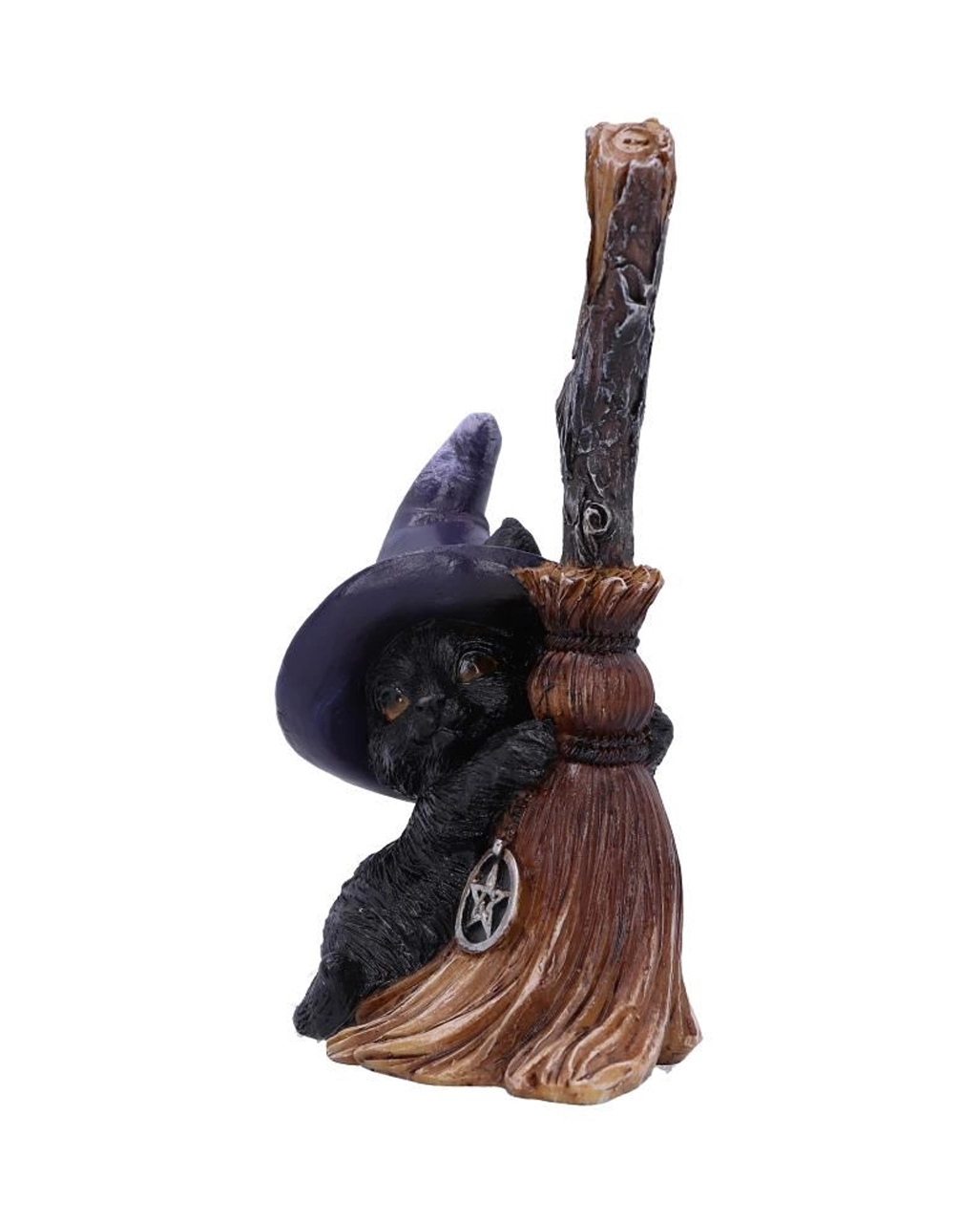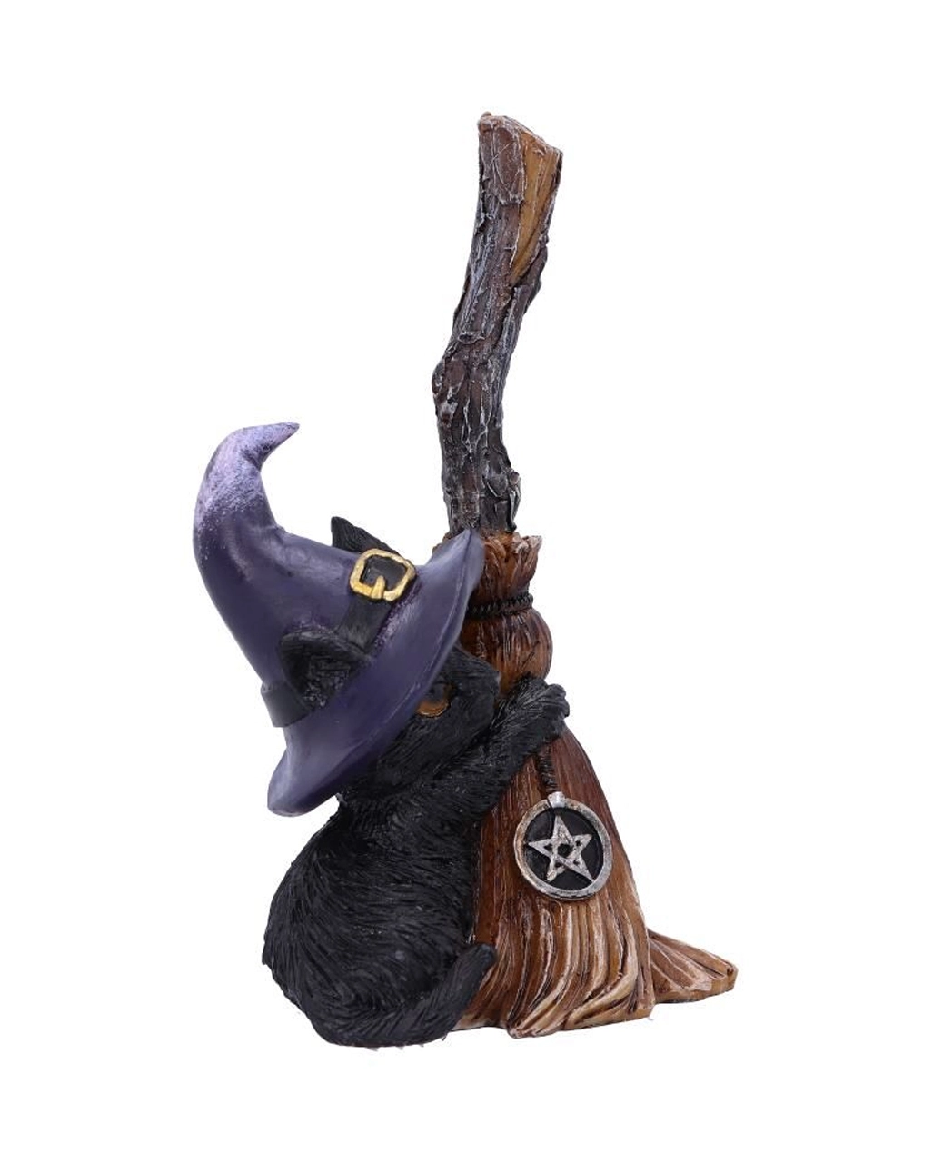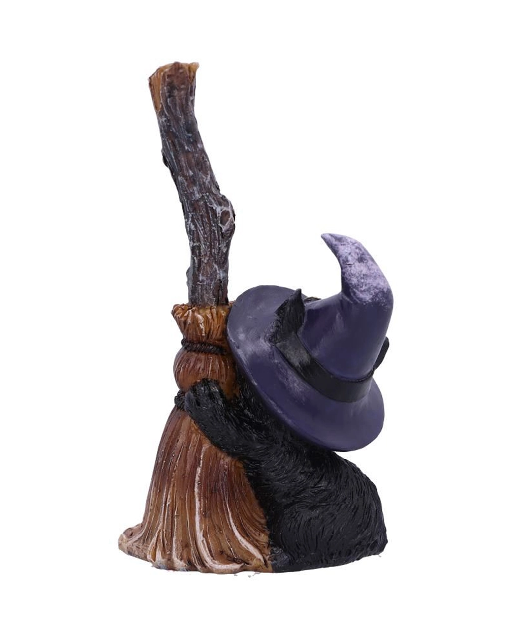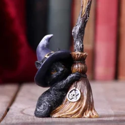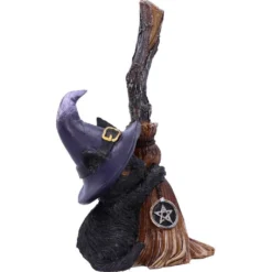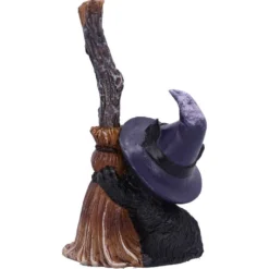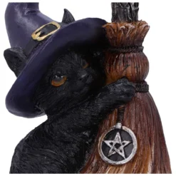 Polyresin Katzenfigur mit Hexenbesen als dekorativer Eyecatcher