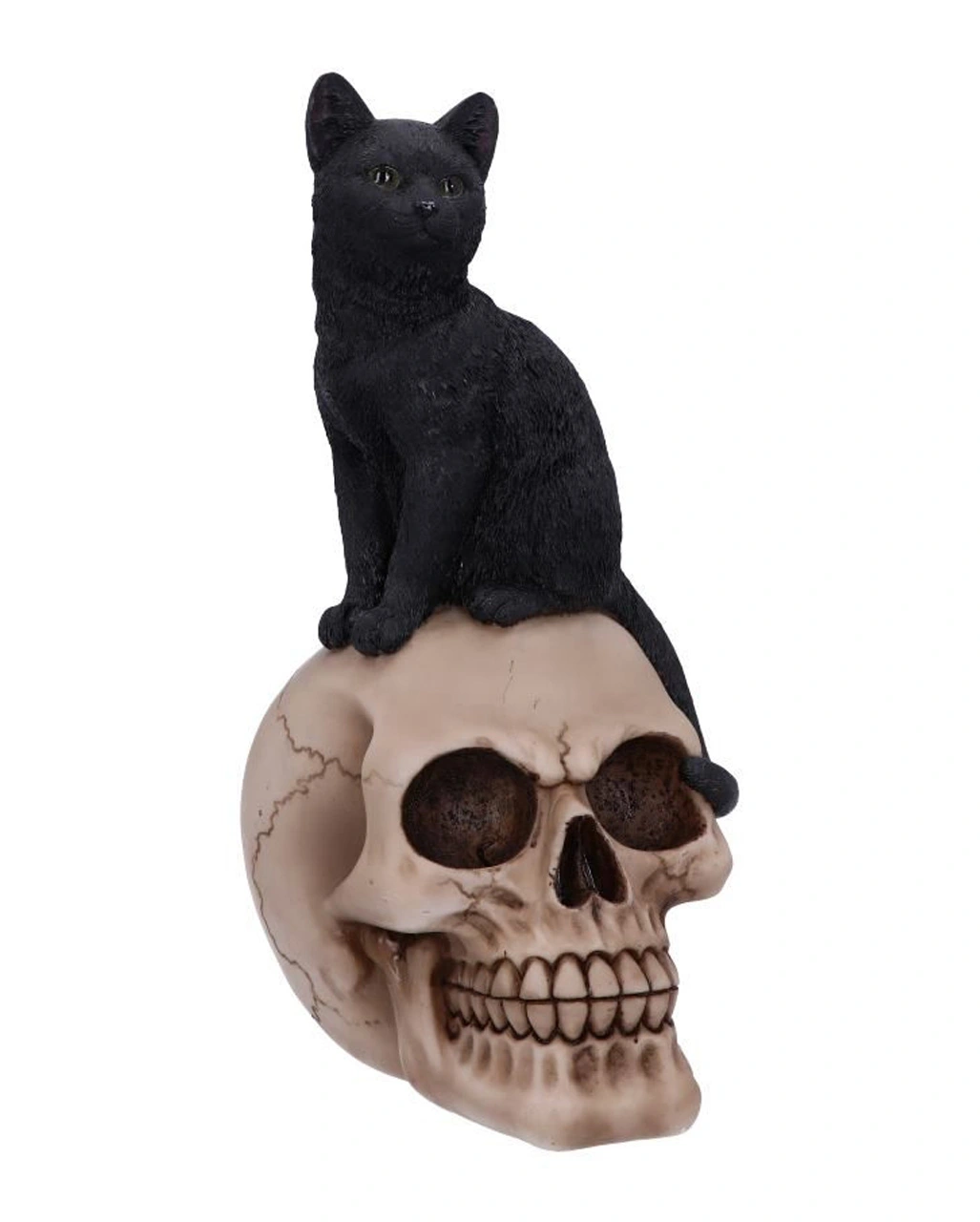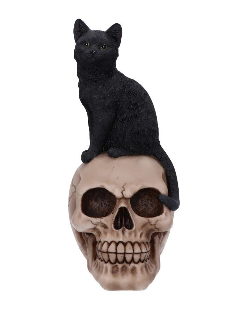 Schwarze Katze auf Totenschädel 24,3cm