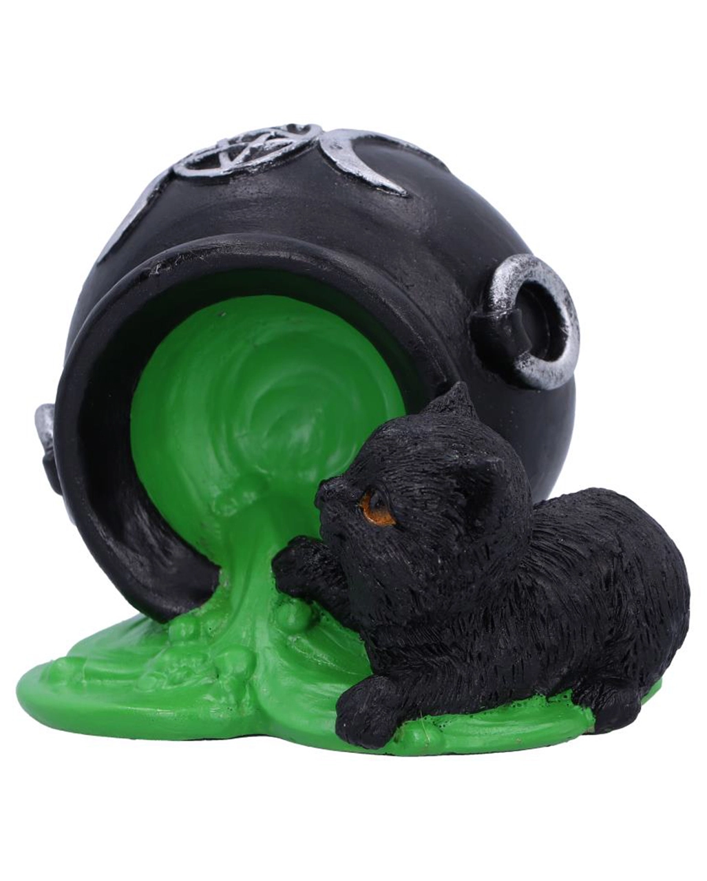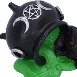 - Niedliche Katzenfigur mit umgeschüttetem Hexenkessel