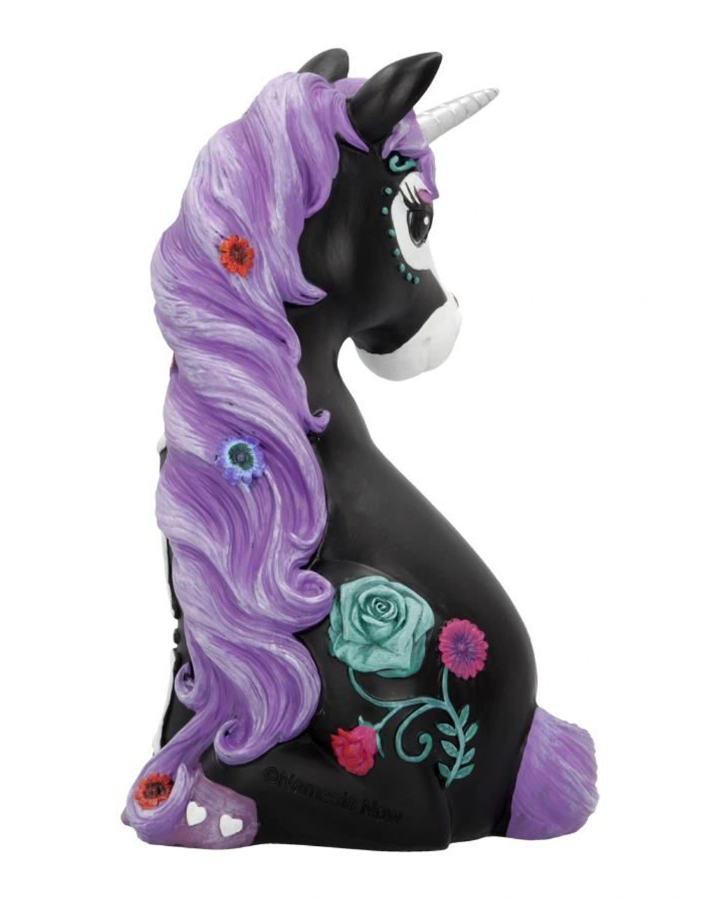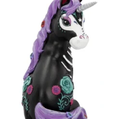 Unser Schwarzes Sugarcorn Einhorn 22cm wird die Herzen der Partygäste im Sturm erobern. Kein Wunder, bei diesem bezaubernden Augenaufschlag. Platziere die das Einhorn im Calavera Look am Day of the Dead oder an Halloween auf dem Tisch und sorge für ein optisches Deko Highlight. Auch als Mitbringsel für einen Gothic Fan wird das liebliche Dia de los muertos Fantasy Wesen für Begeisterung sorgen.