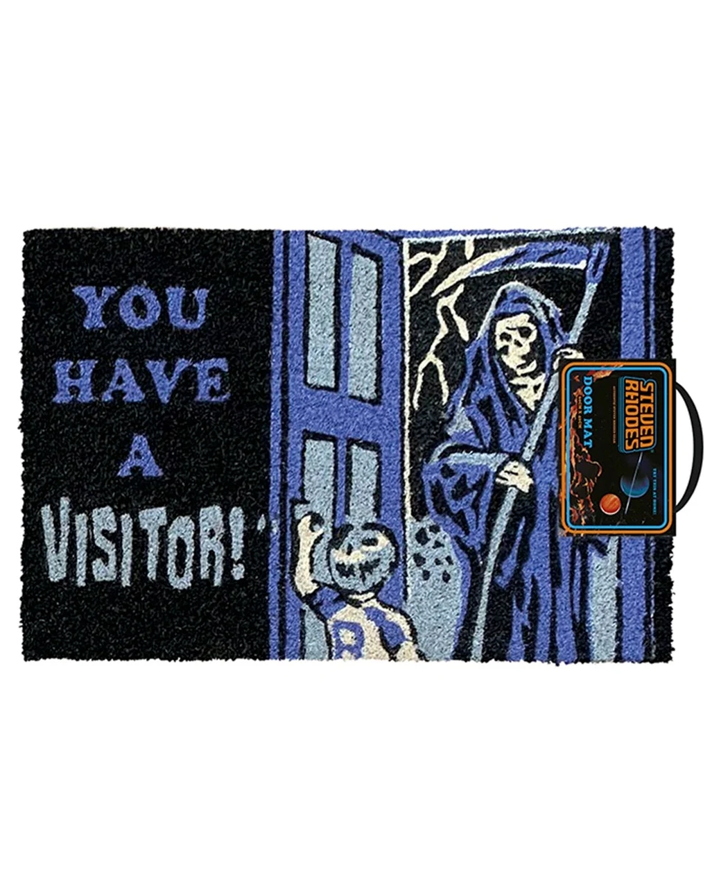 Mit der Steven Rhodes You have a Visitor Fußmatte hast du den idealen Fußabtreter für die Gruselnacht gefunden. Begrüße deine Partygäste bereits am Eingang mit einer echt schaurigen Nummer und schütze deine Wohnung gleichzeitig vor zu viel Schmutz. Der gruselige Sensenmann und sein kleiner Freund mit der Kürbis Maske fangen nicht nur den Dreck ab, sie sorgen auch für einen unheimlichen Hingucker vor deiner Tür.