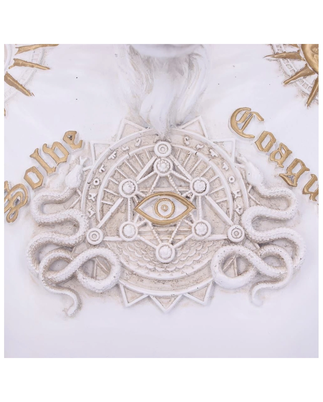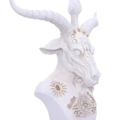 Unsere weiße Baphomet Skulptur ist ein mystischer Hingucker. Unheimlich und trotzdem so elegant und luxuriös. Die Hochwertigkeit und der okkulte Touch machen den Reiz dieses eindrucksvollen Wohn Accessoires aus. Die Dekofigur mit Ziegenhörner zeigt die Vereinigung von Gut und Böse. Ziere damit deine Gruft und huldige auf besondere Weise deiner Liebe zu den ambivalenten Mächten auf der Welt.