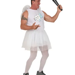 Das 3-teilige Zahnfee-Männerballett Kostüm besteht aus einem weißen Oberteil mit Zahnaufdruck an dem ein prächtiges Tutu angenäht ist, Zahnfee Kopfschmuck und weißen Flügeln. Passend dazu wäre noch ein Feen Zauberstab mit Silberstern. Für die Halloween-Variante findest du zudem die Folter Werkzeug Rohrzange, damit kannst du dann als folternde Zahnfee durch die Stadt ziehen.
