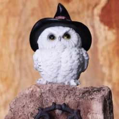 Mystische Tierwesen kommen in zahlreichen Fantasy-Geschichten, Märchen und Grusellegenden vor. Neben schwarzen Katzen, Einhörnern und Schattentieren darf auch die Schneeeule nicht fehlen. Ihr schneeweißes Gefieder ist besonders eindrucksvoll und tarnt sie in einer schneebedeckten Landschaft. Außerdem wird die Schneeeule mit Weisheit und Magie assoziiert. Nicht umsonst wird sie auch als Hexenvogel bezeichnet. Unsere zauberhafte Schneeeule mit Hexenhut ist ideal für Fans von Magie und Zauberei. Sichere dir diese beeindruckende Schneeeule aus Kunststein und platziere sie im Regal, auf dem Nachttisch oder dem Fensterbrett.